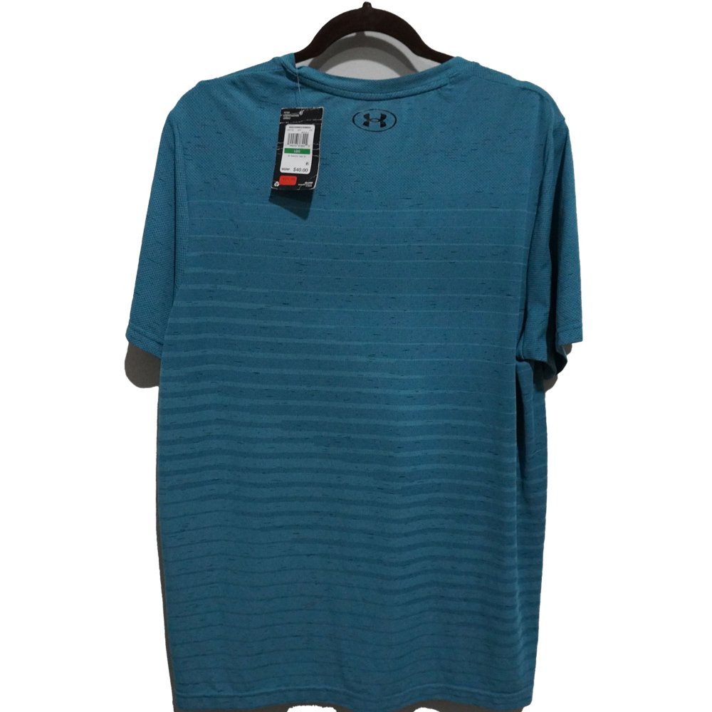 PLAYERA MARCA: UNDER ARMOUR TALLA: L COLOR:AZUL TEXTURA: JASPEADA